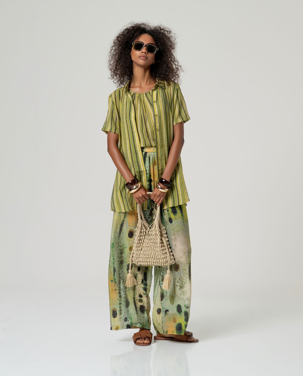 Barra reta com pequenas fendas laterais. Feito de viscose leve e tecido de poliamida. Projetado em Barcelona.